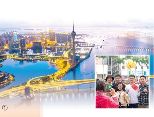 伶仃洋畔,歡歌笑語。當天,澳門舉行了“邁向美好明天”大巡游。4500多人組成了21個花式表演方陣、24輛大型花車及群眾方陣,規模空前。