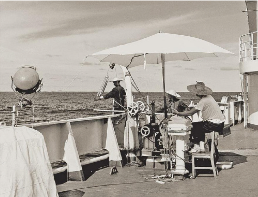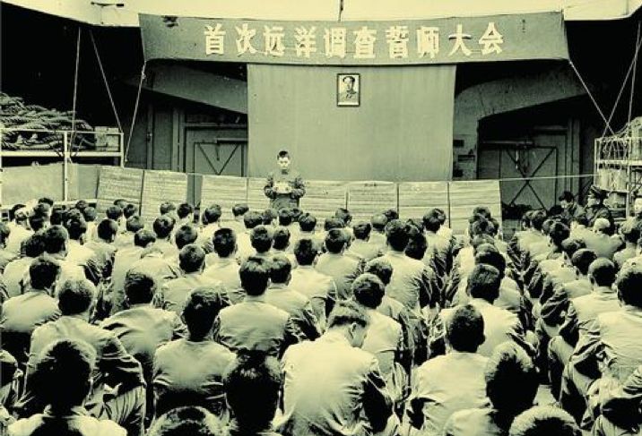 這一天,在“向陽紅五號”的船艙里,科研人員舉行了莊嚴隆重的誓師大會。大會上,各部門依次宣讀決心書,個人代表紛紛發言,立志完成任務,整個會場口號聲、掌聲與喝彩聲此起彼伏。然而,幾乎所有船上人員都沒有遠洋調查的經驗,對浩瀚的太平洋充滿未知,出發前,甚至有人寫好了遺書。