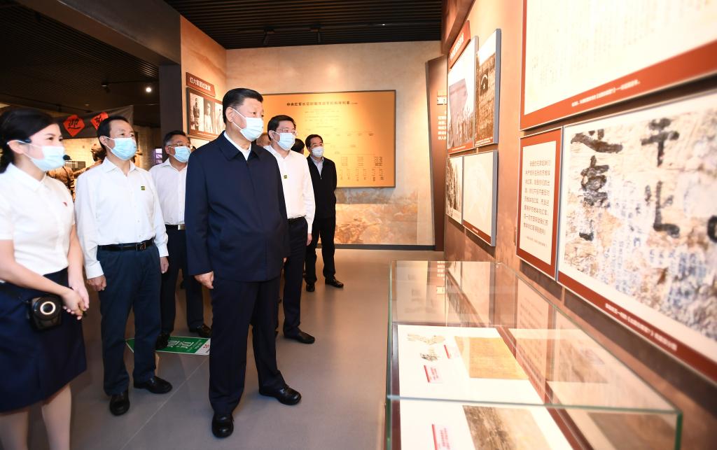 2020年9月16日,習近平在郴州市汝城縣文明瑤族鄉沙洲瑤族村“半條被子的溫暖”專題陳列館,了解當地開展紅色教育情況。(新華社記者 謝環馳 攝)