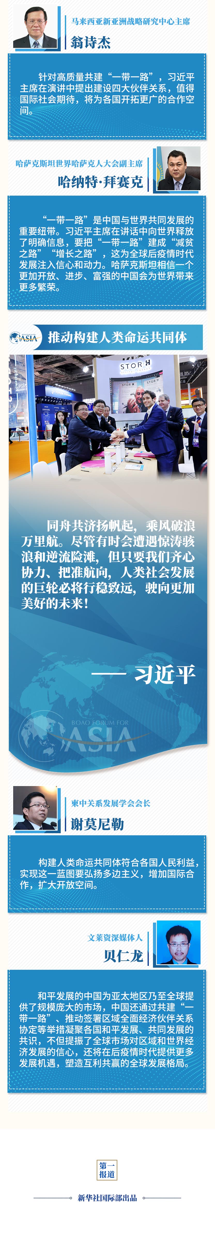 新華社北京4月21日電 博鰲亞洲論壇2021年年會開幕式20日上午在海南博鰲舉行,國家主席習近平以視頻方式發表題為《同舟共濟克時艱,命運與共創未來》的主旨演講。多國人士表示,習近平主席的演講著眼于人類共同利益,為各國攜手共克疫情、加強全球治理、高質量共建“一帶一路”、構建人類命運共同體注入新的強大動力。
