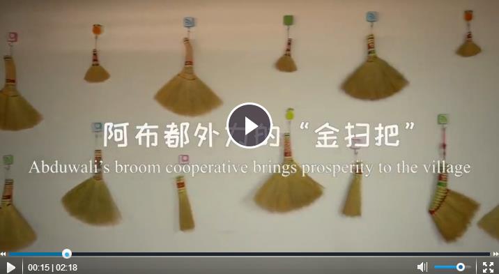 “這個掃把是掃床用的、這個掃把是刷鍋用的、這個是工藝掃把”,阿布都外力·艾力喜笑顏開地介紹著他的“寶貝”。在村委會的幫助下,阿布都外力·艾力成立了紅穗掃把農民專業(yè)合作社,他將那些返鄉(xiāng)的人吸收到合作社,進行統(tǒng)一的培訓。