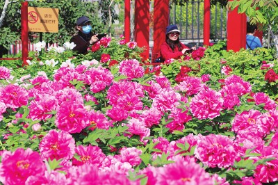 游客在江蘇沛縣楊屯鎮(zhèn)南山牡丹園觀景賞花,鄉(xiāng)村旅游發(fā)展持續(xù)帶動農(nóng)民增收。張體會攝/光明圖片