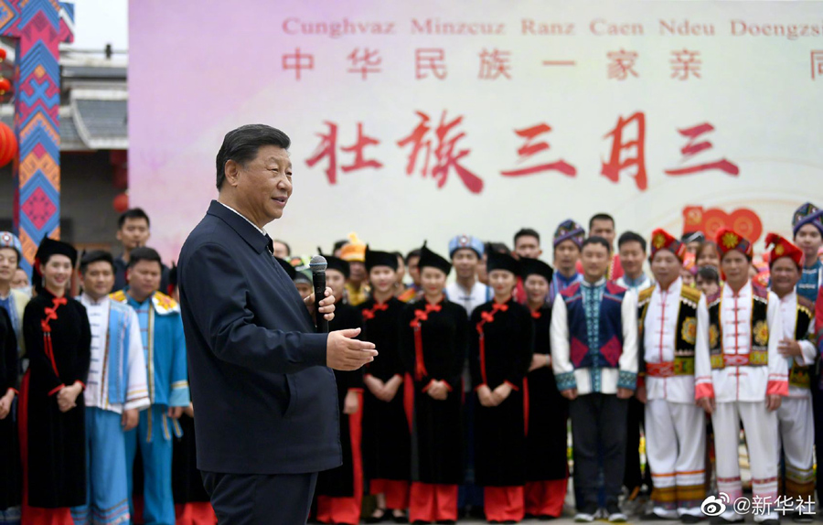 27日上午,正在廣西南寧考察調(diào)研的習(xí)近平總書記,來(lái)到廣西民族博物館,參觀壯族文化展,觀看三月三“歌圩節(jié)”壯族對(duì)歌等民族文化活動(dòng)展示,了解促進(jìn)民族團(tuán)結(jié)進(jìn)步和民族文化保護(hù)傳承等情況。(文字記者:張曉松、朱基釵;攝影記者:鞠鵬、謝環(huán)馳、申宏)