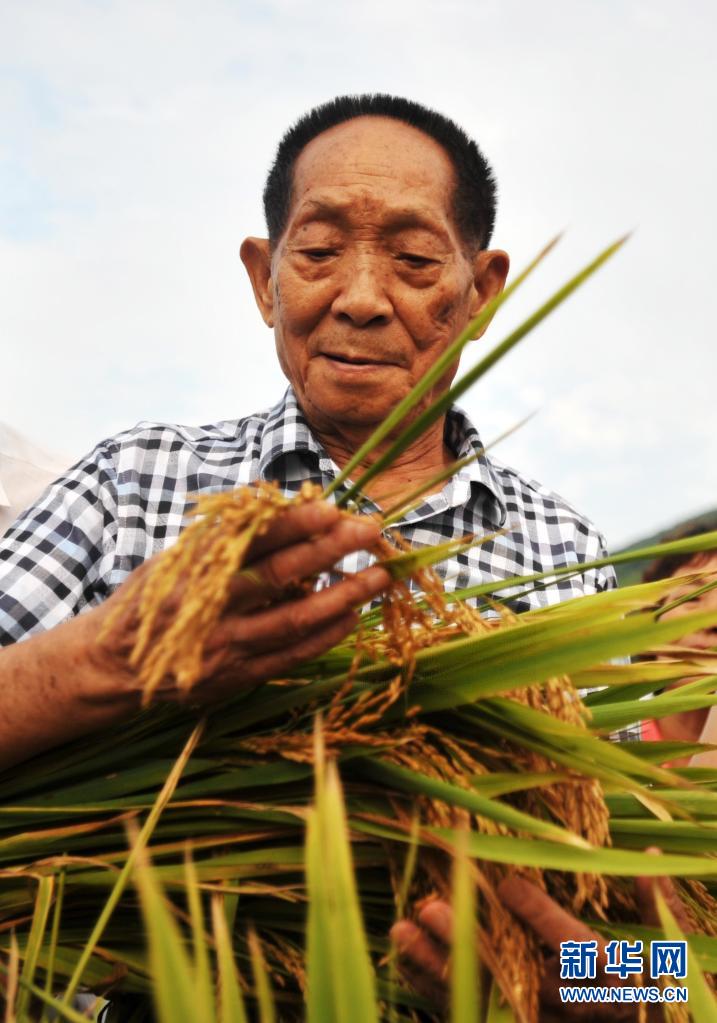 2013年8月19日,袁隆平院士在廣西桂林市灌陽縣黃關鎮聯德村袁隆平超級稻第四期攻關示范片查看水稻生長情況。新華社記者 陸波岸 攝