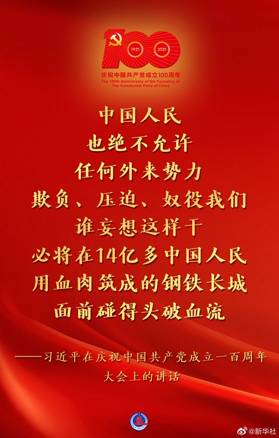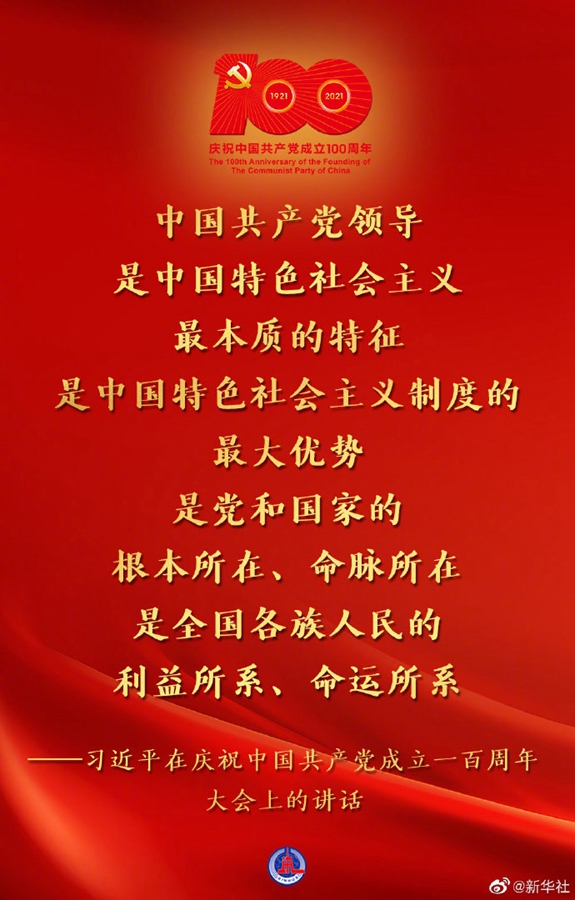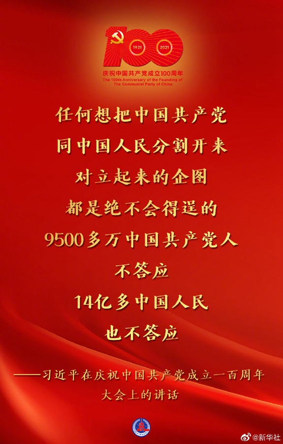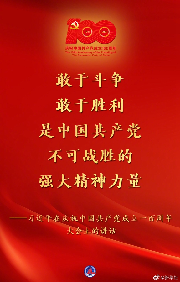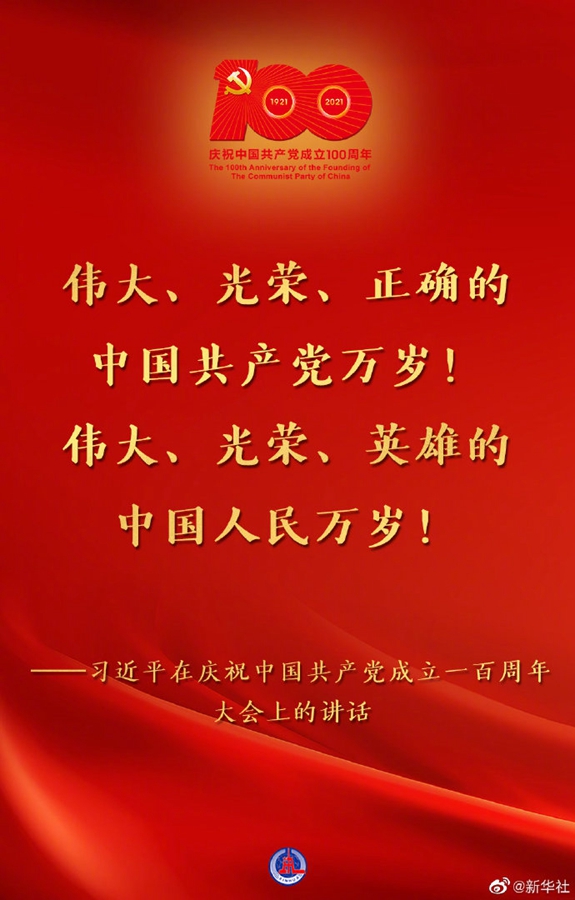 7月1日,慶祝中國共產黨成立一百周年大會在北京隆重舉行,習近平總書記出席并發表重要講話?匆c↓