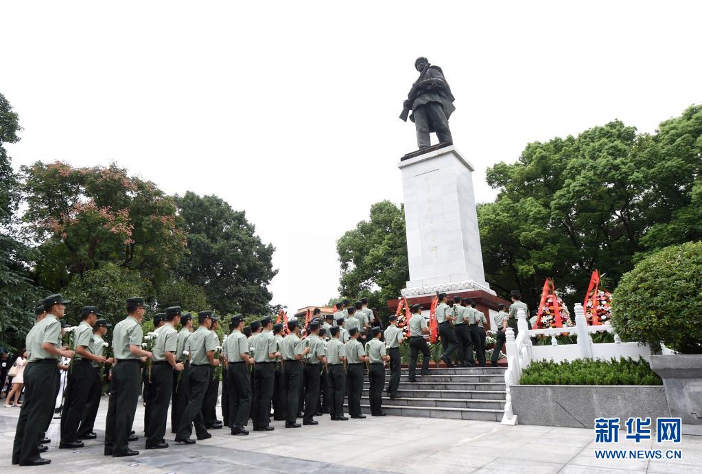 在位于重慶市銅梁區的邱少云烈士紀念館,武警官兵向邱少云烈士紀念碑獻花(2017年9月30日攝)。新華社記者 唐奕 攝