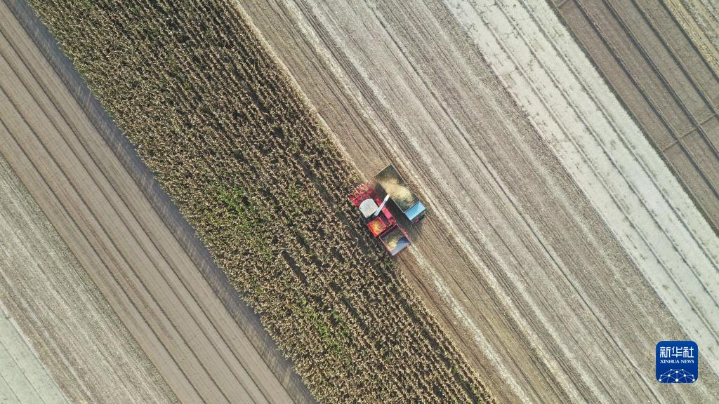 10月19日,河北省唐山市豐南區(qū)大新莊鎮(zhèn)小河莊村的農(nóng)民在田間收獲玉米。