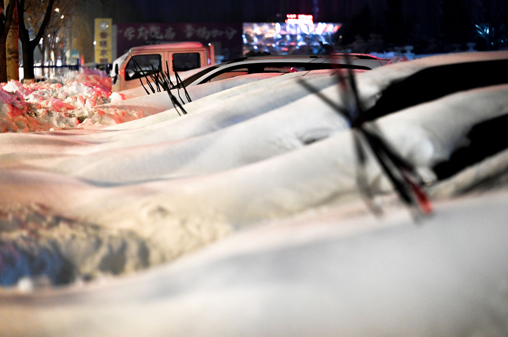 ↑11月10日,在內蒙古通遼市,汽車被積雪覆蓋。
