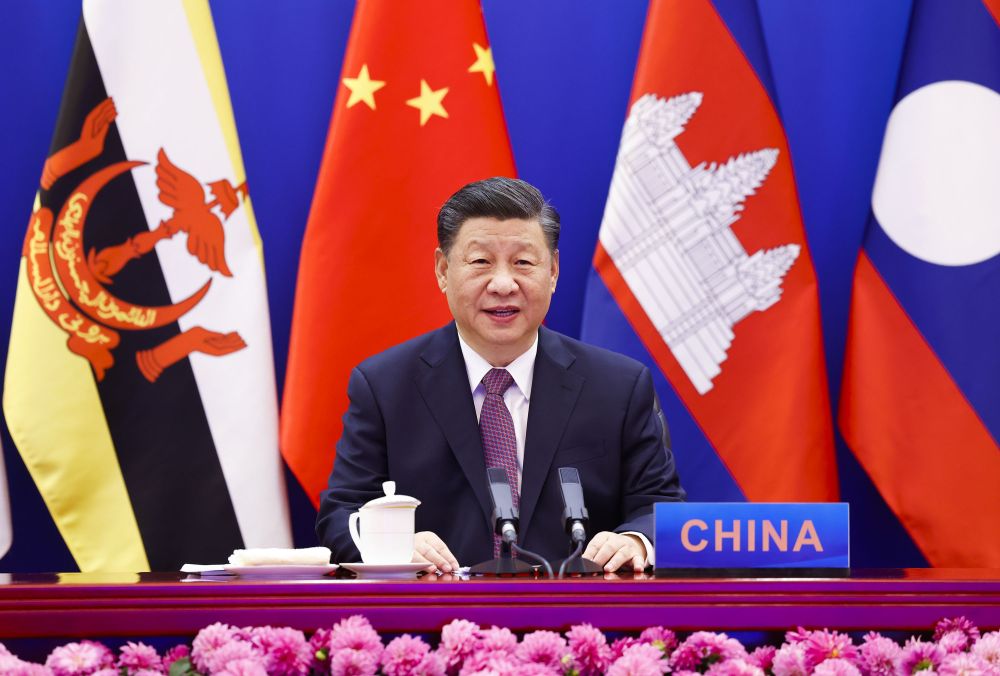 ↑2020年11月27日,國家主席習近平在第十七屆中國—東盟博覽會和中國—東盟商務與投資峰會開幕式上致辭。