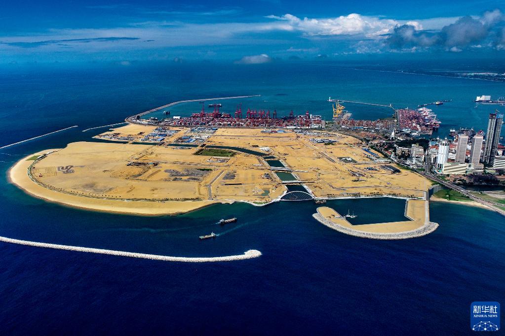 這是2021年12月2日拍攝的斯里蘭卡科倫坡港口城全景(無人機照片)。新華社發(科倫坡港口城項目公司供圖)