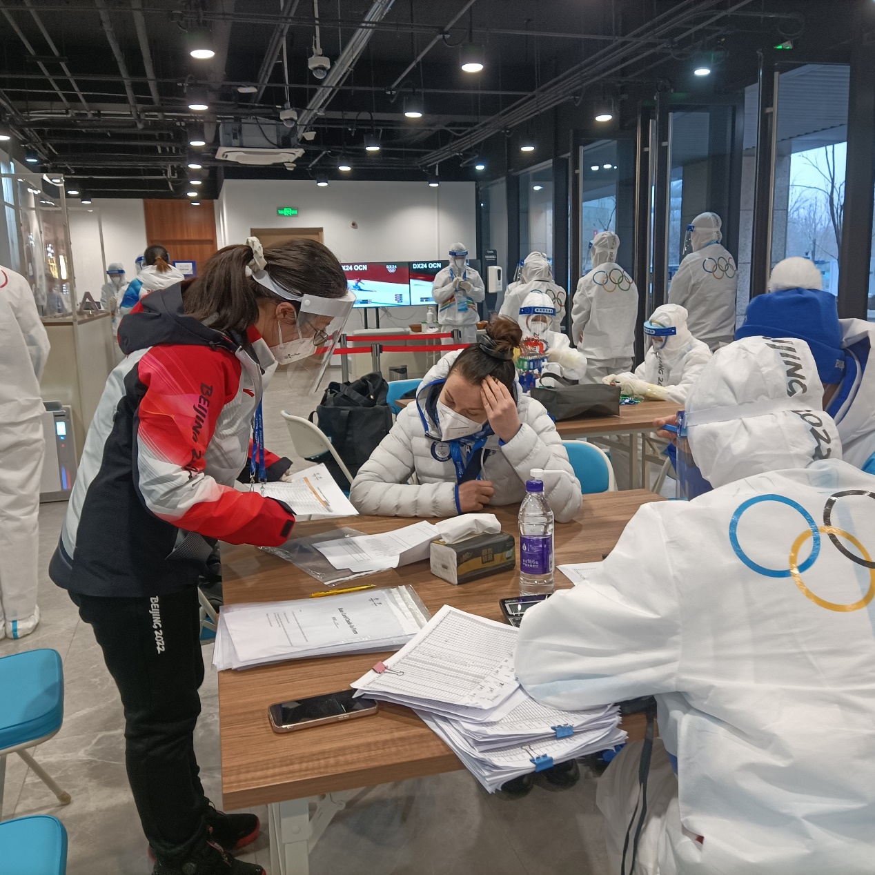 1月23日,北京冬奧村預開村第一天,北京冬奧村住宿團隊和收費卡中心為英國、美國、加拿大等15個代表團先遣團辦理入住手續并發放房卡等物資。