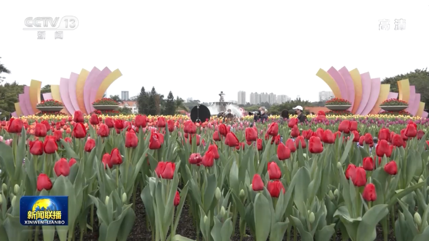 在云南麗江,數萬盆鮮花色彩斑斕,穿行古城,如同置身花的海洋;在廣州白云山,20多個品種10萬多株郁金香花開爭艷。宛如一張張花色地毯,吸引市民爭相前來打卡。