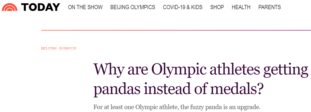 據(jù)美國(guó)全國(guó)廣播公司(NBC)《今日秀》(TODAY)報(bào)道,在北京冬奧會(huì)各項(xiàng)比賽賽后舉行的頒花儀式上,奪得獎(jiǎng)牌的運(yùn)動(dòng)員都會(huì)領(lǐng)到一個(gè)冬奧吉祥物“冰墩墩”。作為本屆冬奧會(huì)的“頂流”,“冰墩墩”也成了深受各國(guó)運(yùn)動(dòng)員喜愛(ài)的大明星。