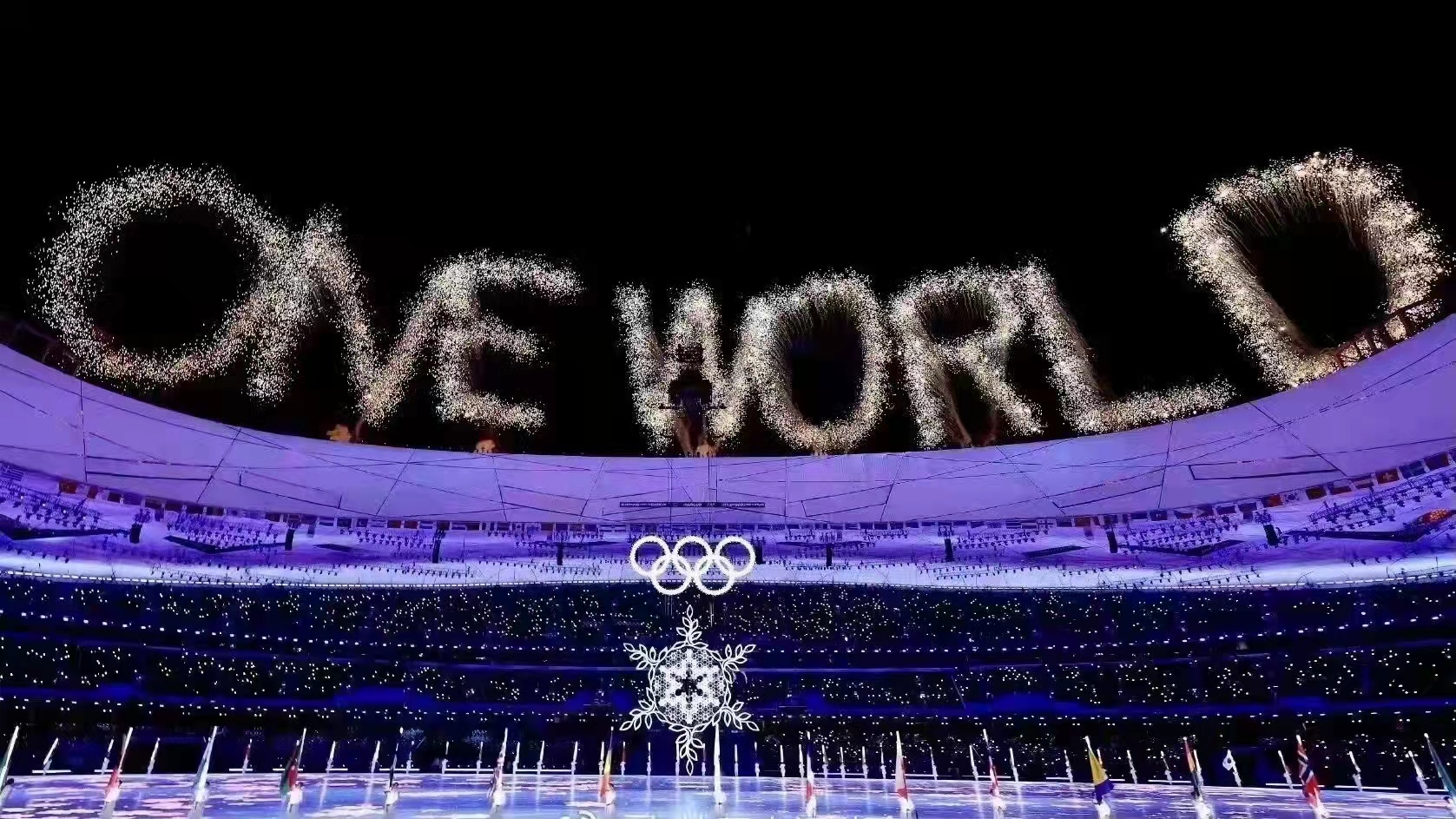 一片片寫有參賽國家和地區名字的“小雪花”在空中起舞,匯聚成五環之下的“大雪花”;無數條紅絲帶從四面八方飛來,將雪花火炬臺裝點成為一個巨大的紅色中國結——北京冬奧會開閉幕式上這些文化符號,傳遞著“世界大同、天下一家”的理念,將成為人們共同的美好記憶與前行力量。