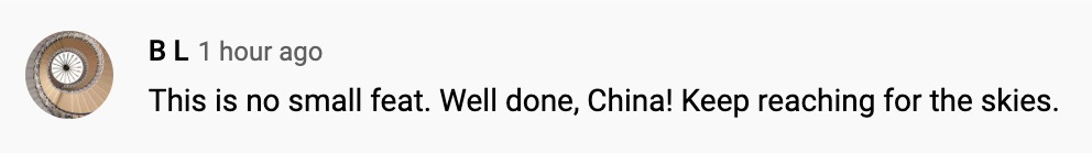 “好樣的!這標志著中國太空探索取得新的成就,這也是屬于全人類的驚人成就。”