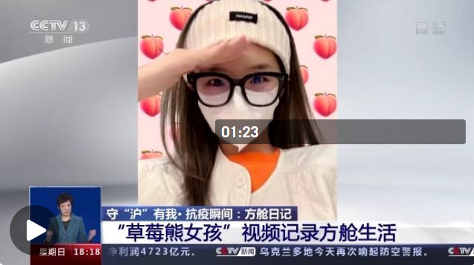 方艙隔離人員“草莓熊女孩”凱梨:方艙里每天會播放上海廣播“蛤蜊電臺”的節(jié)目,有音樂、健康小知識,還有兒童節(jié)目,主持人的聲音很暖,感覺方艙的生活也沒那么艱難了。我每天都會聽,現在是午間節(jié)目,午安!