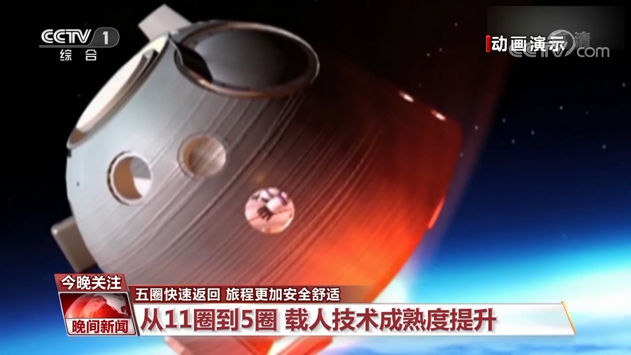 其實,神舟飛船的硬件和軟件都沒有更改,而是隨著任務(wù)成熟度的提高,飛船返回流程作了更合理的編排,從標(biāo)準(zhǔn)的11圈縮短到5圈,體現(xiàn)出我國載人任務(wù)技術(shù)的不斷成熟。