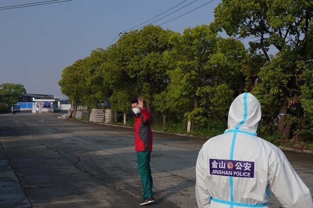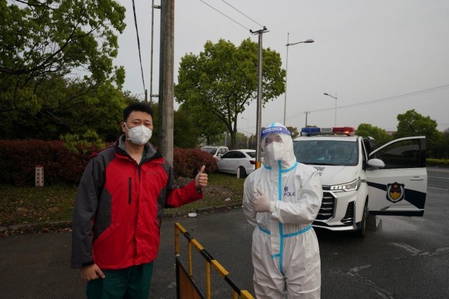 4月21日,上海市金山區(qū)天華路方艙醫(yī)院門口,剛剛走下班車準(zhǔn)備進(jìn)艙上班的同濟(jì)醫(yī)院醫(yī)療隊(duì)隊(duì)員、急診搶救室護(hù)士長劉建,疾步走向一位站在執(zhí)勤警車前、胸前貼著警察標(biāo)識的“大白”,一見面他們互相寒暄:“你一點(diǎn)沒變化嘛!這么多年一直在鍛煉,身材保持得不錯(cuò)嘛,退伍不褪色!” “很想擁抱一下!可惜現(xiàn)在還不是時(shí)候……”這位“大白“是劉建十年前一起退伍的戰(zhàn)友兼好朋友、金山區(qū)公安局民警湯佳斌。