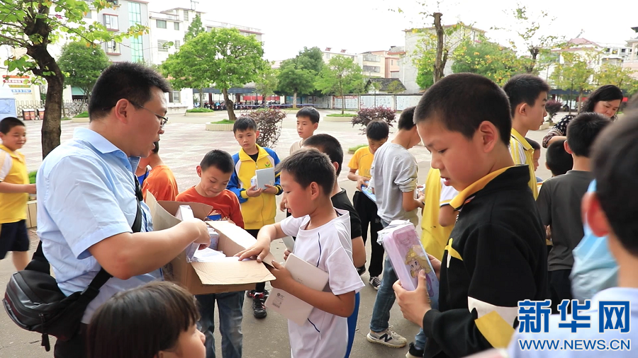 ▲在江西省大余縣南安小學(xué),當(dāng)?shù)赜嘘P(guān)部門為留守兒童送來書本、文具等學(xué)習(xí)用品。新華網(wǎng)發(fā) 嚴(yán)杰 攝