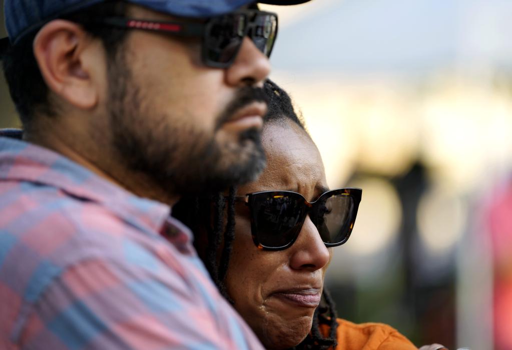 5月28日,在美國(guó)得克薩斯州南部尤瓦爾迪市的城市廣場(chǎng),市民哀悼羅布小學(xué)槍擊事件遇害者。新華社記者吳曉凌攝