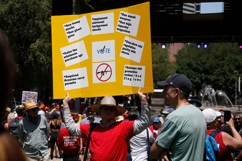 5月27日,在美國(guó)得克薩斯州休斯敦,一些民眾舉行集會(huì)抗議槍支暴力,呼吁控槍。新華社發(fā)(勞承躍攝)