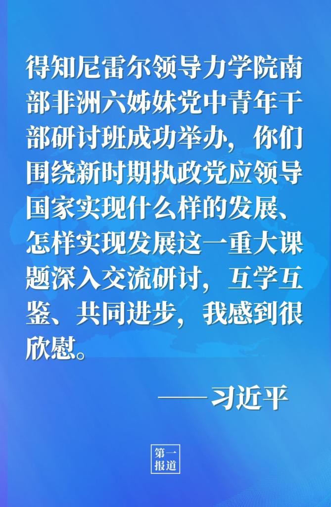 中共中央總書記習近平6月8日給尼雷爾領導力學院南部非洲六姊妹黨中青年干部研討班全體學員回信。