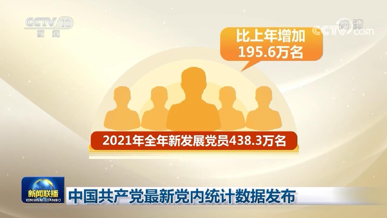 黨員隊伍規模進一步壯大。黨員總數比上年增加3.7%,比黨的十八大召開時增加15.9%。2021年全年新發展黨員438.3萬名,比上年增加195.6萬名。