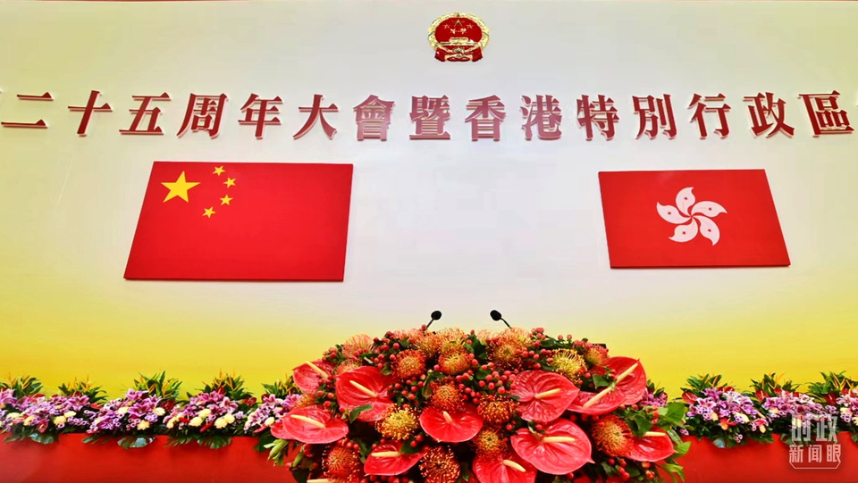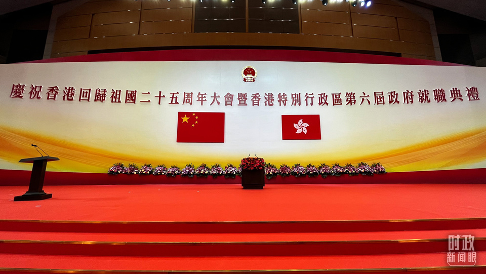 當天上午,慶祝大會暨就職典禮在香港會展中心舉行。25年前,1997年6月30日午夜至7月1日凌晨,中英兩國政府香港政權交接儀式也是在此舉行。歷經百年滄桑的香港回到祖國懷抱,當時的歷史畫面已經成為全體中國人的集體記憶。