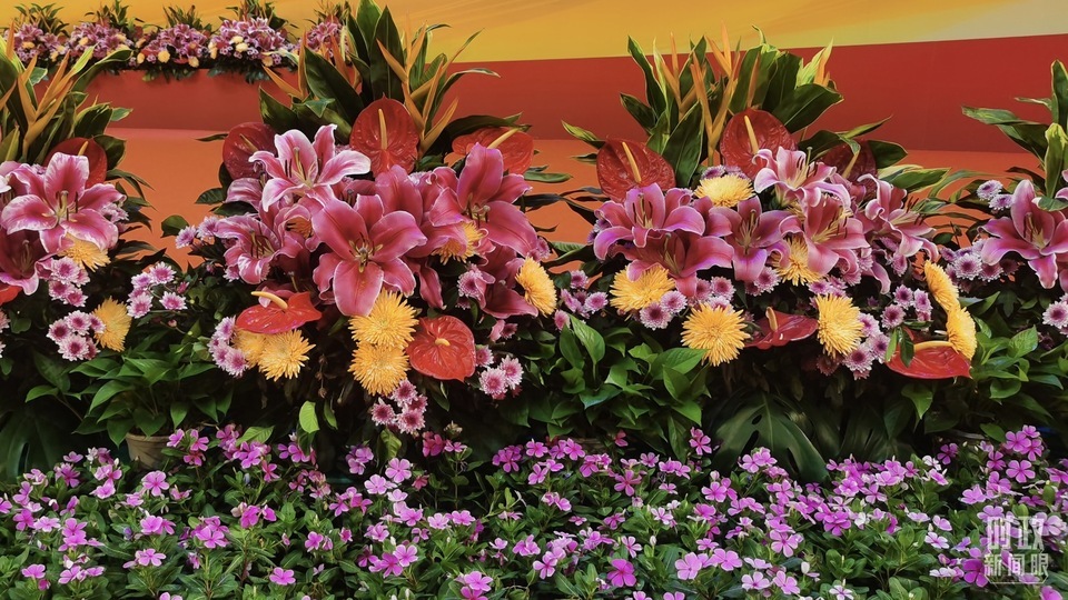 慶祝大會現場擺放的鮮花。(總臺央視記者范凱拍攝)