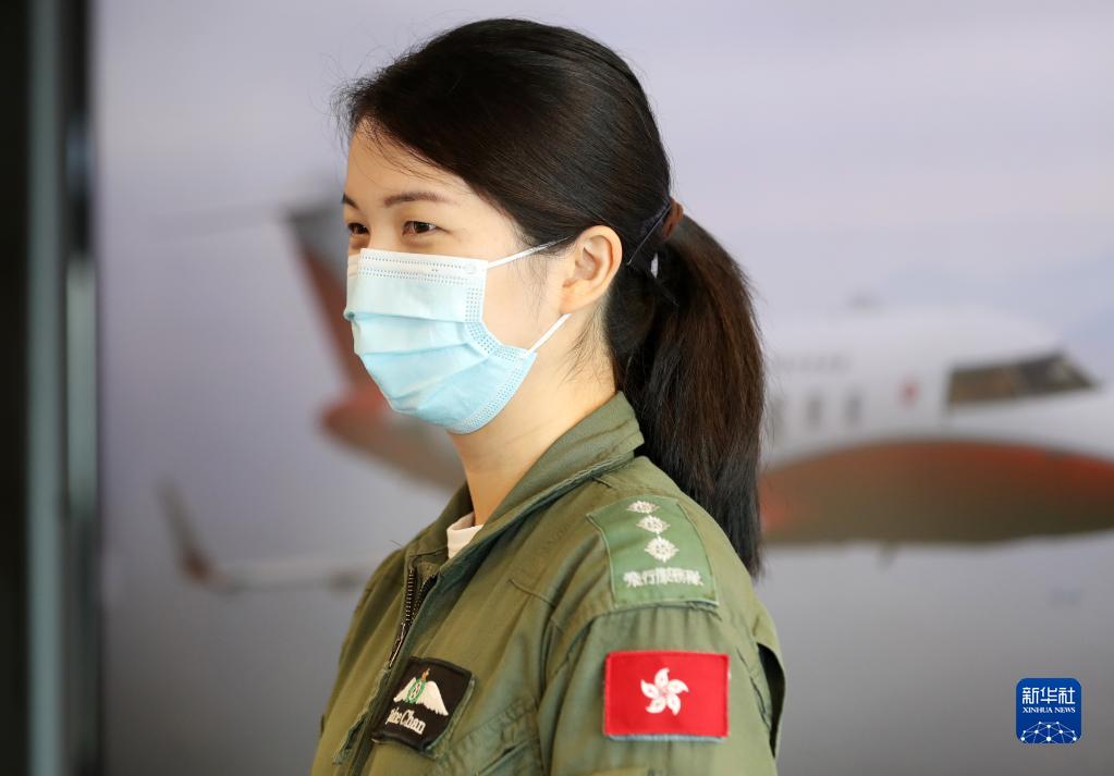 香港特區(qū)政府飛行服務(wù)隊(duì)定翼機(jī)機(jī)師陳綺玲(6月23日攝)。新華社記者 李鋼 攝