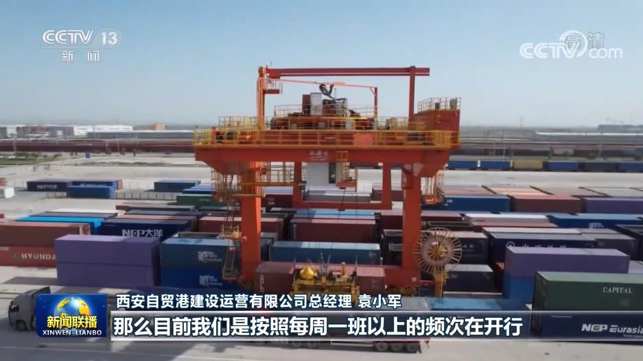 西安自貿(mào)港建設運營有限公司總經(jīng)理 袁小軍:西安經(jīng)過里海和黑海到歐洲去的跨兩海的新線路,目前我們是按照每周一班以上的頻次在開行,基本上滿足了陜西及周邊地區(qū)企業(yè)對于到歐洲通道的需求。