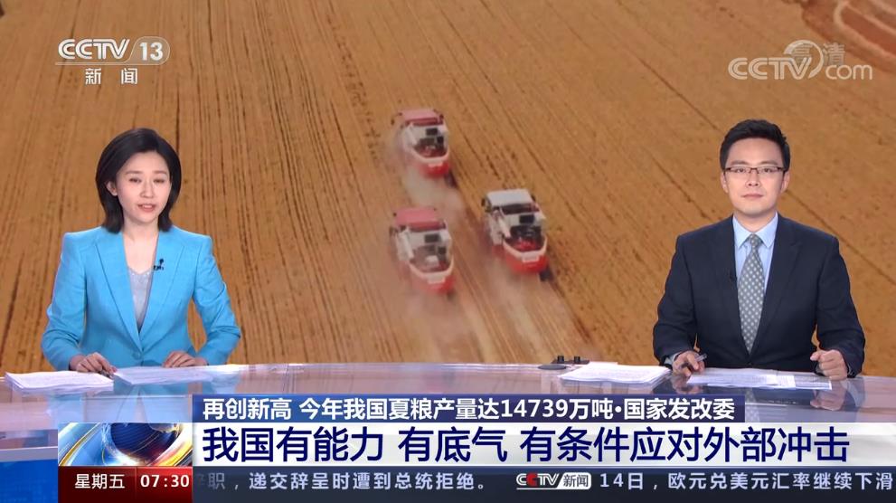 央視網(wǎng)消息:在國家發(fā)展改革委7月14日召開的經(jīng)濟吹風(fēng)會上,國家發(fā)展改革委經(jīng)貿(mào)司有關(guān)負責(zé)人表示,當(dāng)前我國糧食安全形勢較好,有能力、有底氣、有條件應(yīng)對外部沖擊,端穩(wěn)端牢“中國飯碗”。