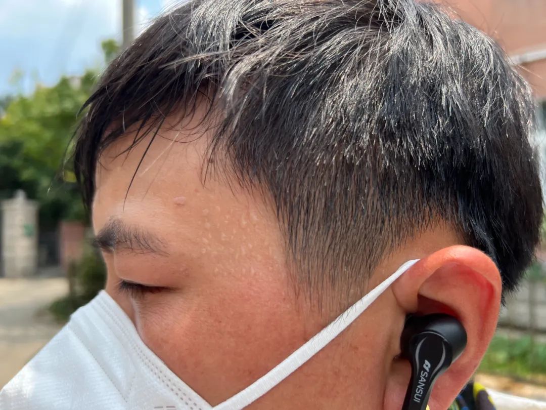 臨近中午,氣溫逼近40℃。穿戴著防曬衣、圍脖、頭盔、N95口罩的小姜大口喘著氣,汗水浸濕了衣服,臉頰露出的部分被曬得發黑發紅,全是汗水!胺罆袼獩]什么用,穿得多不是怕曬黑,是之前被曬傷脫了好幾層皮!毙〗f。