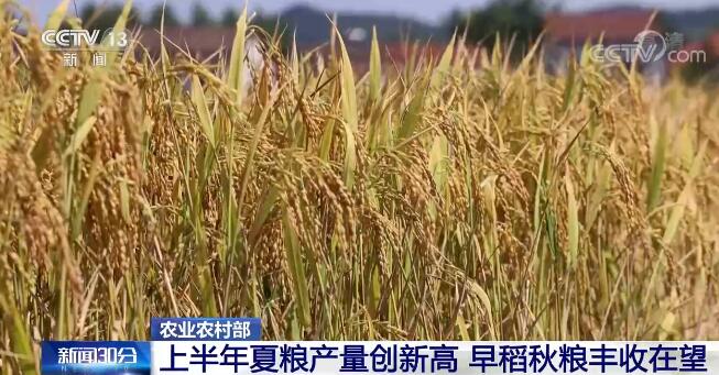 上半年,我國夏糧產量再創(chuàng)歷史新高,達2948億斤,成為經濟社會發(fā)展的突出亮點。早稻及秋糧豐收基礎較好。目前,早稻收獲過六成,豐收在望。秋糧面積超過13億畝,長勢總體正常。 “菜籃子”產品供應充足,市場運行總體平穩(wěn)。