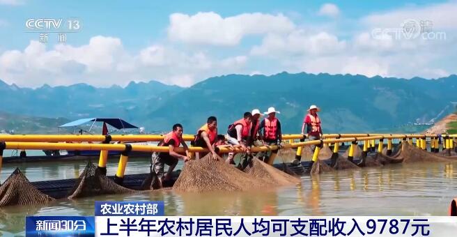 上半年,鄉(xiāng)村富民產業(yè)穩(wěn)定發(fā)展,農村就業(yè)增收渠道不斷拓寬。全國農副食品加工業(yè)增加值同比增長3.3%,農產品網絡零售額達2900億元,同比增長12.4%。截至6月末,返鄉(xiāng)農民工就業(yè)率達90.7%,同比提高2個百分點。在產業(yè)帶動、就業(yè)創(chuàng)業(yè)拉動下,上半年農村居民人均可支配收入9787元,實際增長4.2%。