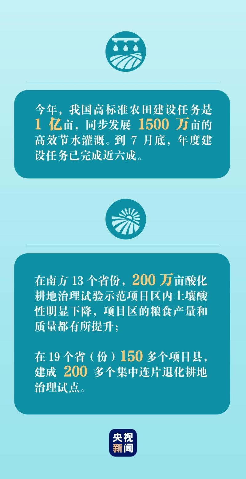 農業農村部有關負責人介紹,今年以來,我國加強農田基礎設施建設,有力推進耕地地力保護和提升,提高糧食產能。