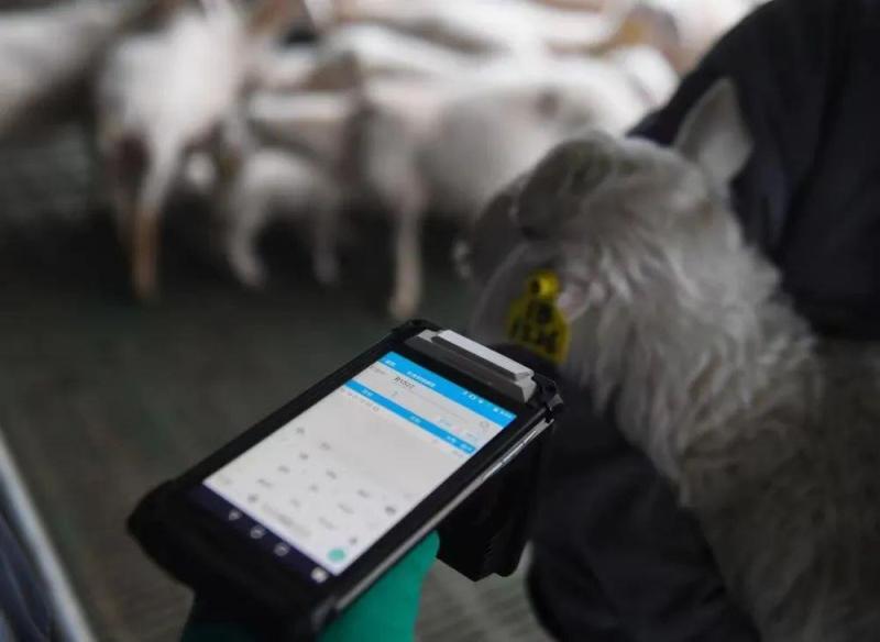 △浙江省湖州市長興縣呂山鄉,湖羊智慧循環產業園的工作人員在掃描湖羊幼崽耳朵上的數字芯片。