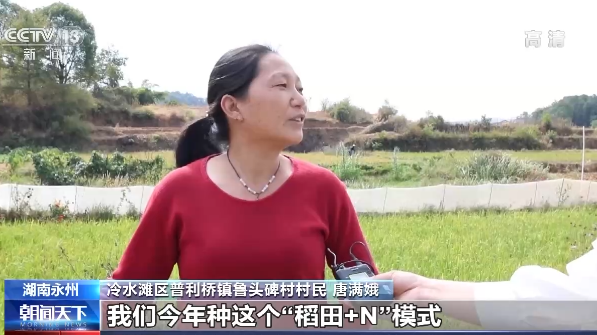 湖南永州冷水灘區普利橋鎮魯頭碑村村民 唐滿娥:變化很大,公路也修好了,戶戶通了,現在國家政策這么好,我們今年種這個“稻田+N”模式,我們養禾花魚、泥鰍,我們(收入)可以的。