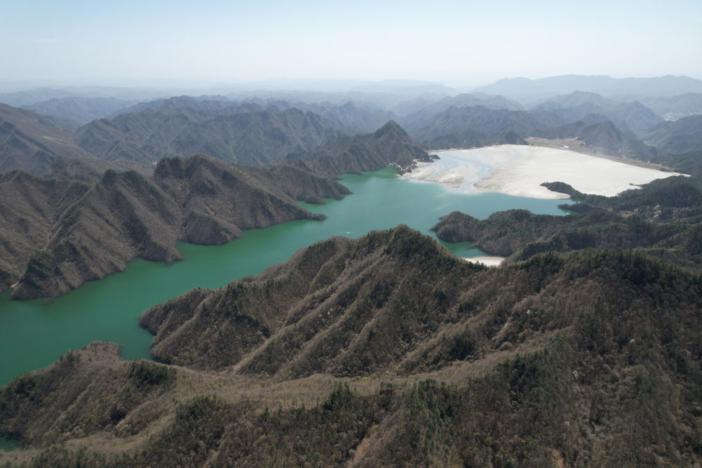 經(jīng)過生態(tài)治理的渭南市華州區(qū)金堆鎮(zhèn)栗西溝尾礦庫(2022年4月7日攝,無人機(jī)照片)。新華社記者 邵瑞 攝