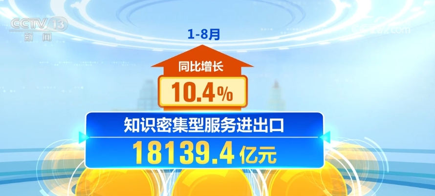 知識密集型服務貿(mào)易占比提升。1—8月,知識密集型服務進出口18139.4億元,同比增長10.4%,占服務進出口總額的比重達42.6%,較上年同期提升0.9個百分點。知識密集型服務出口10513.6億元,增長13.1%,知識密集型服務進口7625.8億元,增長6.9%。