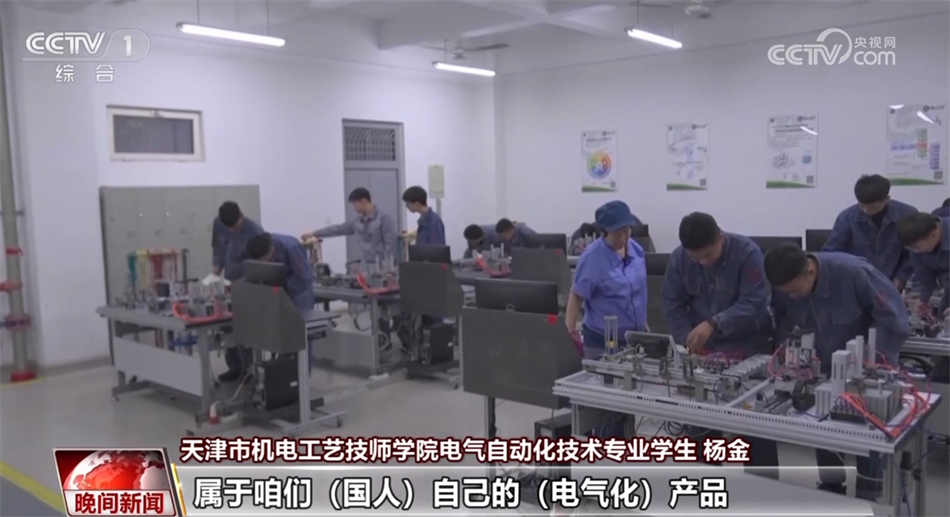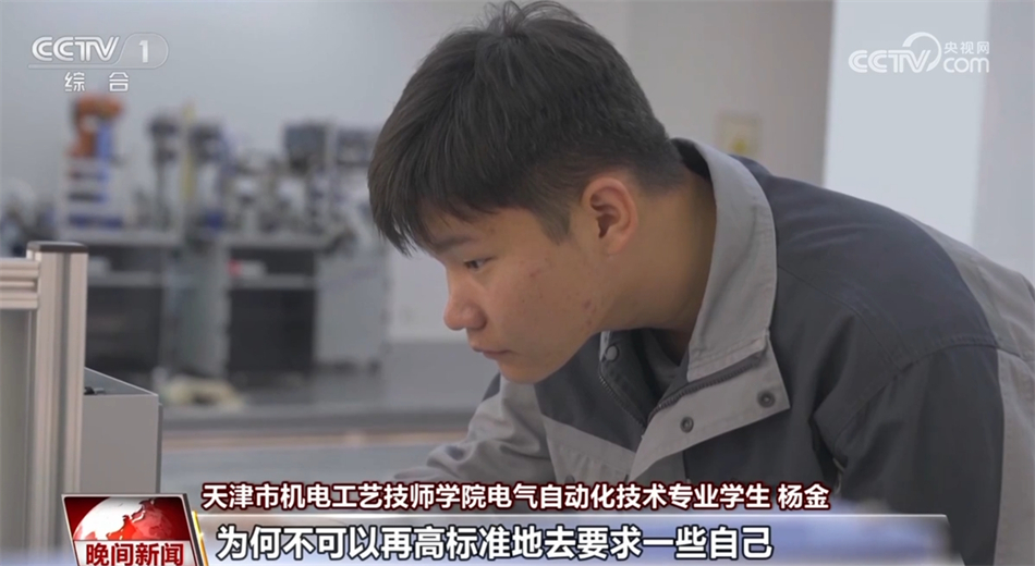 天津市機(jī)電工藝技師學(xué)院電氣自動(dòng)化技術(shù)專(zhuān)業(yè)學(xué)生 楊金:讓每一顆螺絲、每一個(gè)部件都能發(fā)揮出它最大的作用,這就是我的需要和目標(biāo)了。(未來(lái)希望)自主去研發(fā)需要使用的機(jī)器,可以去創(chuàng)造(更多)屬于咱們(國(guó)人)自己的(電氣化)產(chǎn)品。