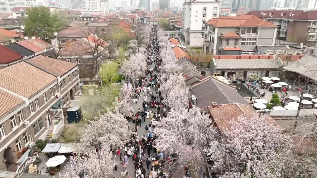 明媚四月,天津五大道歷史文化街區(qū)千株海棠相約綻放,粉色花海綿延成片,百年小洋樓掩映其間。一年一度的海棠花節(jié),讓這份春日浪漫有了更多“打開方式”,吸引游客紛至沓來。