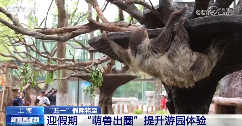 不只是這些“明星”動物,小動物樂園里還迎來了新“居民”——四只二趾樹懶。憨態可掬的樹懶用它長長的爪子勾住樹枝倒掛身軀,并在樹上不斷移行。它的慢動作和它一天能睡18個小時的特性也備受游客喜愛。據了解,園方不僅為它們打造了原生態家園,在食物上也進行了充分準備。