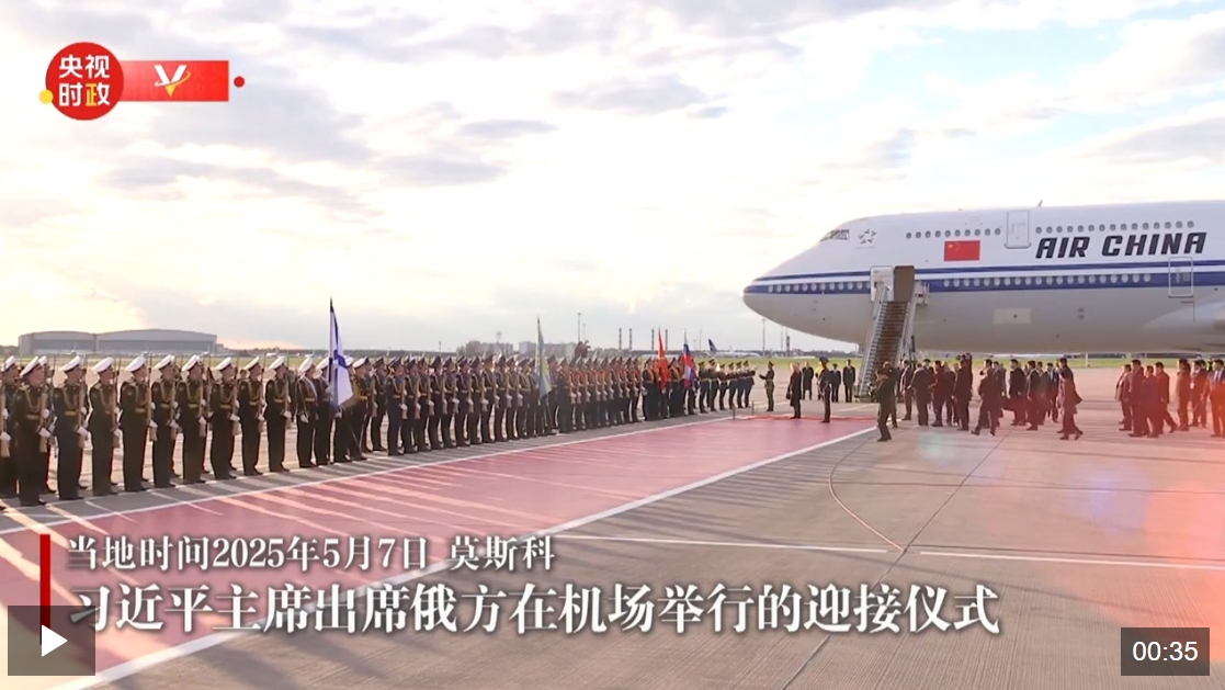 當地時間5月7日晚,國家主席習近平乘專機抵達莫斯科,應俄羅斯總統普京邀請,對俄羅斯進行國事訪問并出席紀念蘇聯偉大衛國戰爭勝利80周年慶典。