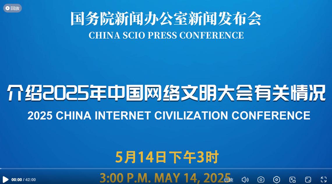 國務院新聞辦公室于2025年5月14日(星期三)下午3時舉行新聞發布會,請中央網信辦(國家網信辦)副主任楊建文,安徽省委常委、宣傳部部長錢三雄介紹2025年中國網絡文明大會有關情況,并答記者問。