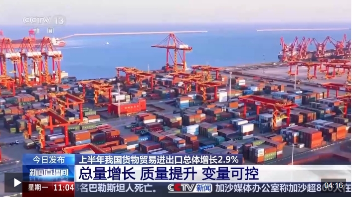 我國上半年貨物貿易進出口總量增長 質量提升 變量可控