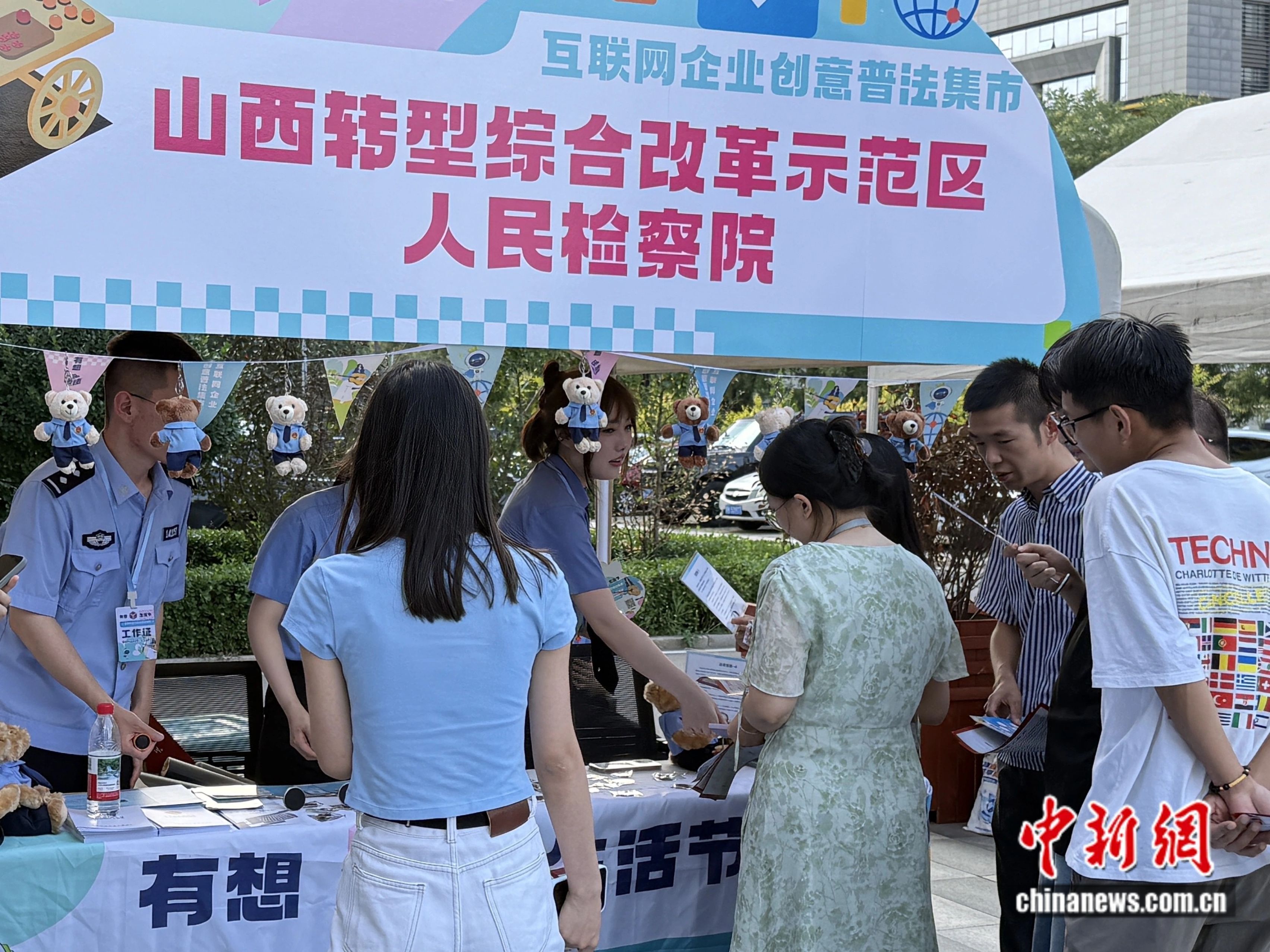 7月22日,2025年“全國網絡普法行·山西站”活動在山西太原啟動。當日下午,采訪團一行來到山西轉型綜合改革示范區,彼時,一場別開生面的“有想‘法’生活節·互聯網企業創意普法集市”活動正在舉行。