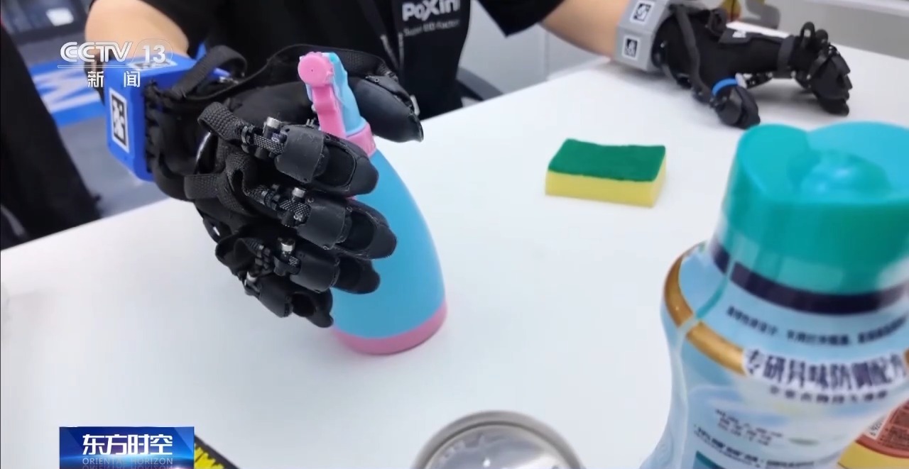 就像大語言模型依賴大規模文本語料,機器人要從“會想”邁向“會做”,同樣離不開海量真實世界的經驗數據做訓練。能實時記錄觸覺、力覺和動作細節的特制“數采手套”,就是連接真實世界和數據世界的介質。