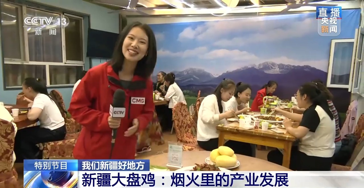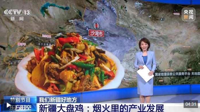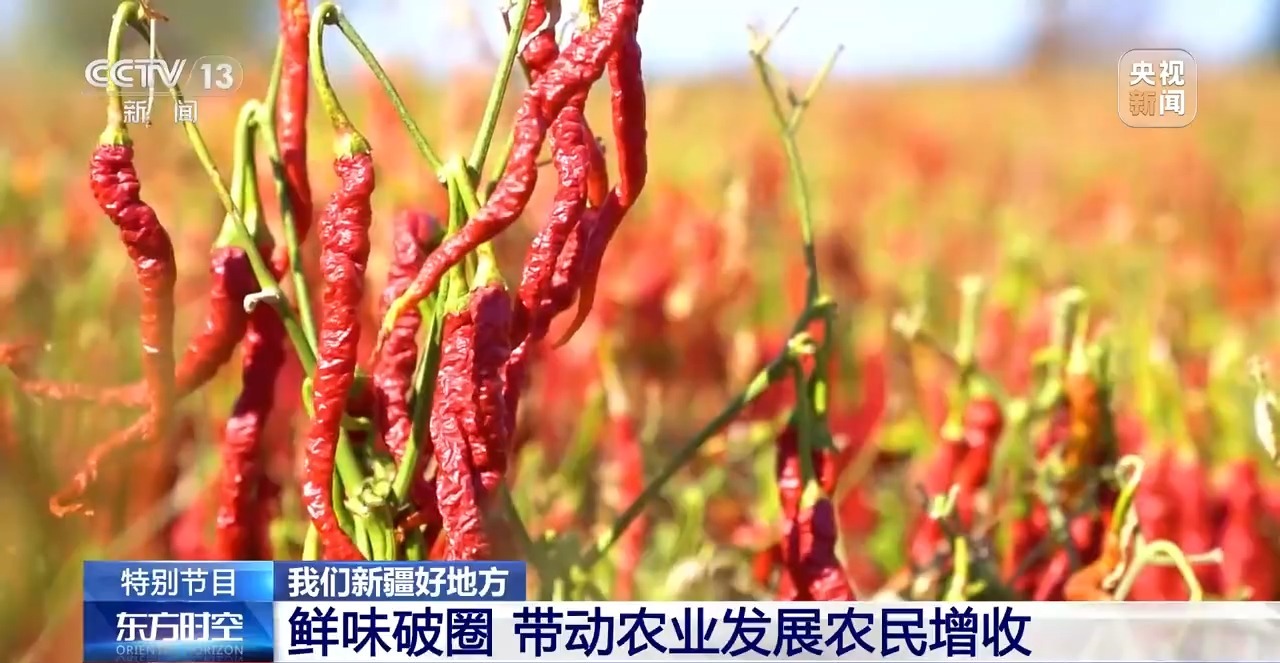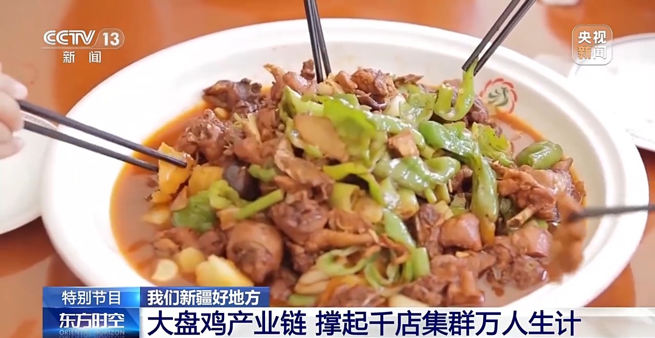 說完了主角,再來說說配菜。這里面的土豆來自博爾通古鄉。最關鍵的辣椒,是當地的主要農作物,來自“辣椒之鄉”安集海鎮。過去這里的辣椒只是農民零散種植,如今已經形成了從育種、種植、加工到銷售的完整產業鏈。這些辣椒不僅給大盤雞“注入靈魂”,也滿足了全國的餐桌需求,還出口到韓國、日本等地。
