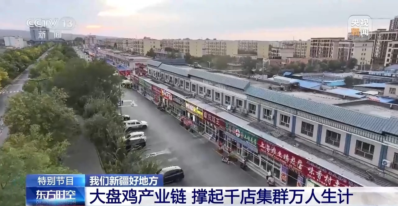 總臺央視記者 張叢婧:在新疆沙灣市的“大盤雞一條街”,這里幾乎家家戶戶都在做大盤雞,此時整條街都彌漫著香味。很多人知道新疆大盤雞,但可能并不知道,它的發源地就在這里。